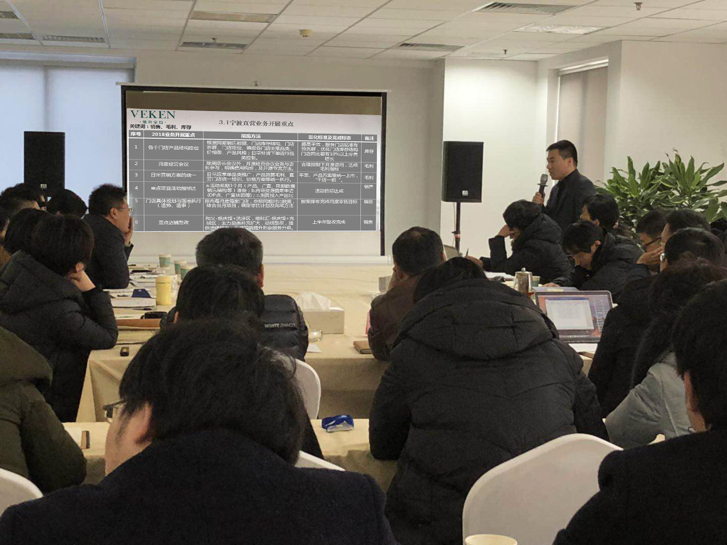 會上王吉鋒總經理對2017年工作進行回顧總結,部署2018年工作計劃,接著圍繞2018年的八項重點工作展開闡述:1、沒有規矩,不成方圓,建設基礎管理體系標準;2、完善信息化體系建設,避免人為錯誤,提高工作效率; 3、依托大數據分析結果,植入并推廣商品運營管理思維;4、關鍵崗位引進專業人才、對標競品,搭建具有競爭力的團隊,5、業績共享、成果共享,建設維科家紡成果共享激勵制度;6、以寧波老三區為重點拓展區域,布局維科家紡網點;7、模式、機制、產品等三方面來實現團購業務突破;8、打造維科家紡中式婚慶定位。18年強化結果導向意識發揚“釘子”精神,希望各級團隊“嚴、實、快、勤”求真務實,敢于擔當。